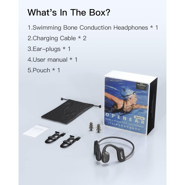 - IP8 Waterproof Rating: With an IP8 waterproof rating, these swimming headphones are fully waterproof and can withstand immersion in water up to a certain depth. This ensures that they remain functional even during intense swimming sessions or underwater activities, providing a reliable and enjoyable listening experience.