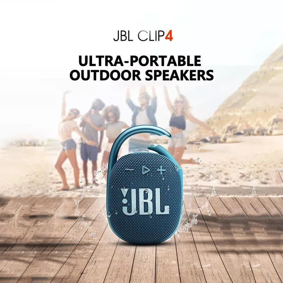 Stylish, portable and waterproof. The fresh-looking JBL Clip 4 speaker delivers surprisingly rich JBL Original Pro Sound sound in a compact package. It has a unique oval shape that fits easily in the hand. The whole is wrapped in a colorful package with distinctive details inspired by contemporary street fashion, and it's easy to match it with your style. The fully integrated carabiner quickly attaches to bags, belts or buckles so you can take your favorite tunes anywhere. Water-resistant, dust-resistant and with up to 10 hours of playback, this speaker is durable enough to take with you wherever you go.